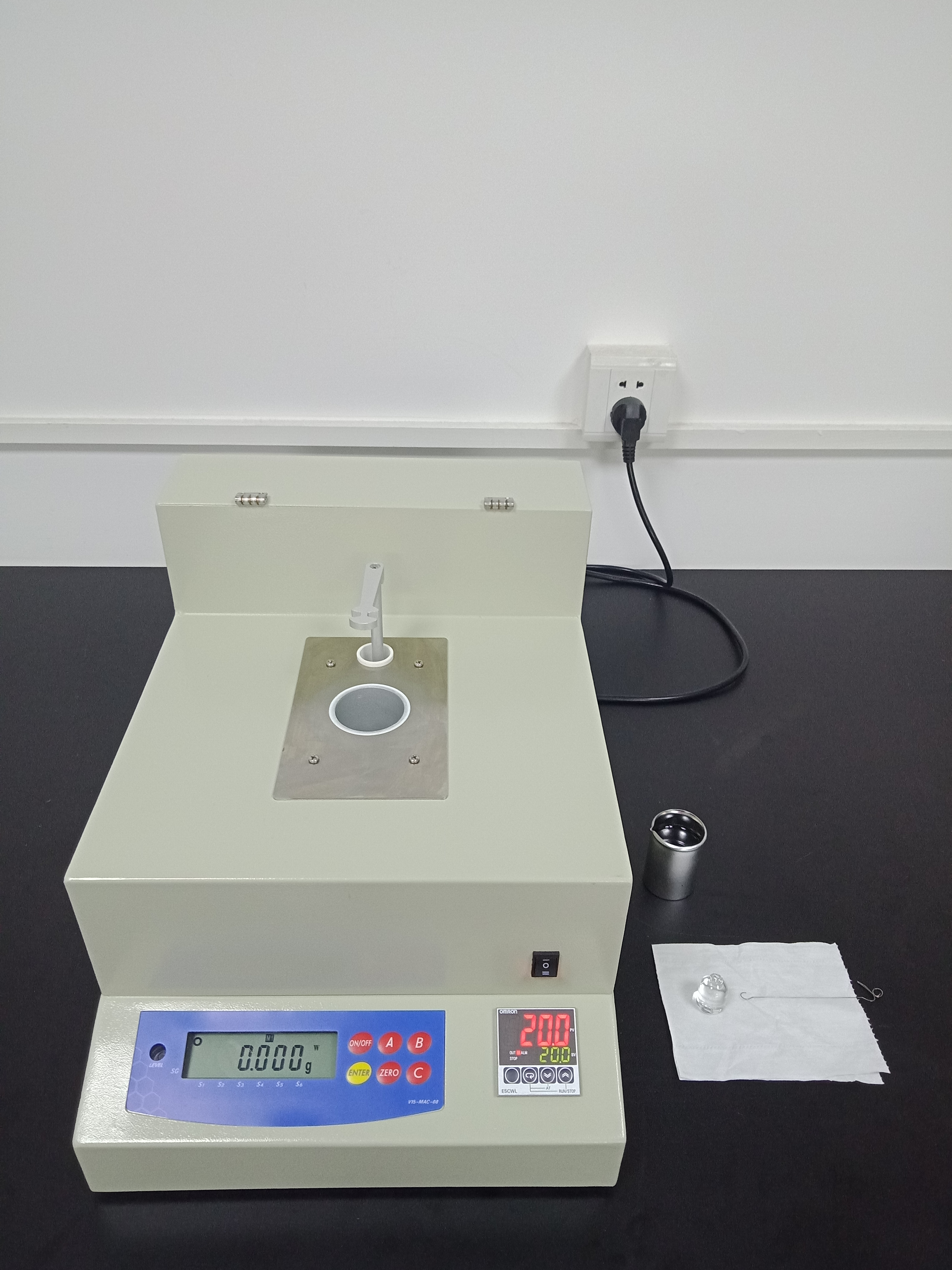 3,測試結束后,按【ENTER】鍵,儀器進入待測模式,清理測量杯和測試砝碼后,即可進行下一個樣品的測試。