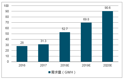 隨著新能源汽車的大力推廣應用,動力電池市場也得到高速發展。據統計數據顯示,2016年中國動力電池需求量達28GWh,全行業有效產能約56Gwh,產能利用率50%左右。2017年中國動力電池需求量將達31.3GWh左右。到2018年,中國動力電池需求量將超50GWh。