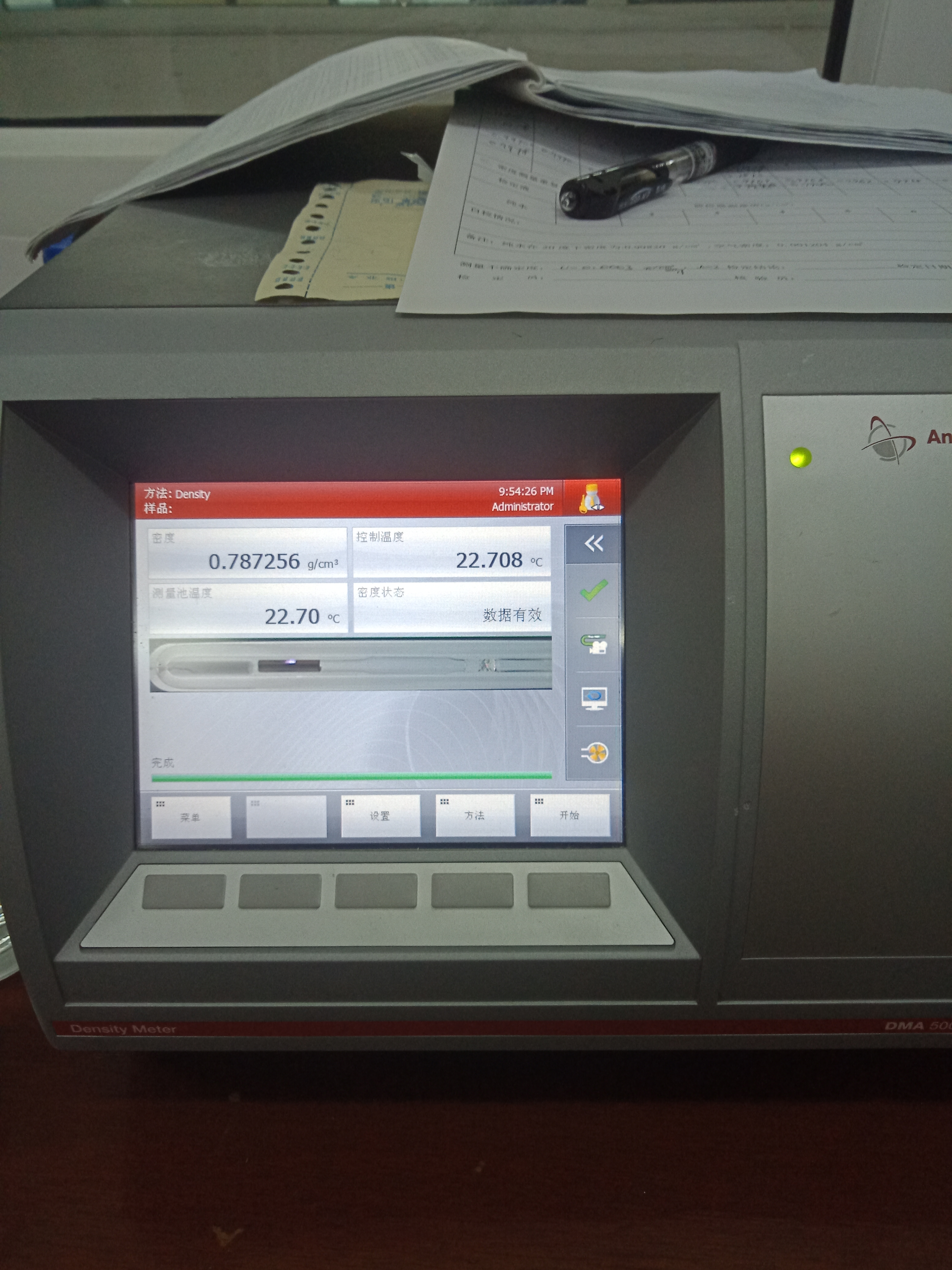 上圖是廣東省計量科學研究院液體密度測試儀器與東莞宏拓DE-120L液體密度測試儀的無水乙醇密度測試結果對比,左圖儀器是廣東省計量科學研究院液體密度測試儀,右圖儀器是東莞宏拓DE-120L液體密度測試儀。