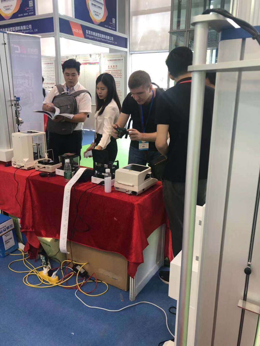 宏拓儀器專業(yè)工廠測試儀器展臺吸引一波又一波的參展觀眾,儀器工程師為現(xiàn)場參展觀眾講解萬能材料拉力試驗機,固體或液體高精度密度測試儀等儀器的使用流程,測試原理,儀器各類詳細參數(shù)和規(guī)格,現(xiàn)場參展觀眾為東莞宏拓儀器的測試儀器不斷的點贊。