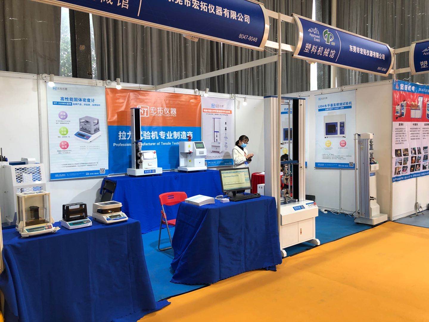 東莞市宏拓儀器有限公司經過精心準備,在此次展會上展出了包括密度測試儀系列、拉力試驗機系列、維卡熱變形測試儀、懸臂梁沖擊試驗機等不同種類的塑料物性測試儀器,憑借精湛的技術水準,高性能的宏拓塑料物性測試儀系列產品再次成為同行業中一大亮點。匠心獨運的設計與精準的測試精度,吸引了眾多中外客商的駐足觀看與咨詢洽談。有不少求購商帶來了自己在塑料某項測試時遇到的技術難題,經過我司的技術工程師的技術指導和測試優化建議,眾多客戶大為滿意,在現場達成了購貨意向。 這是一次行業的盛會,更是一次收獲之旅。此次展會,不僅讓更多的中外客商了解宏拓儀器,而且還帶回了許多終端用戶與經銷商朋友的寶貴意見。