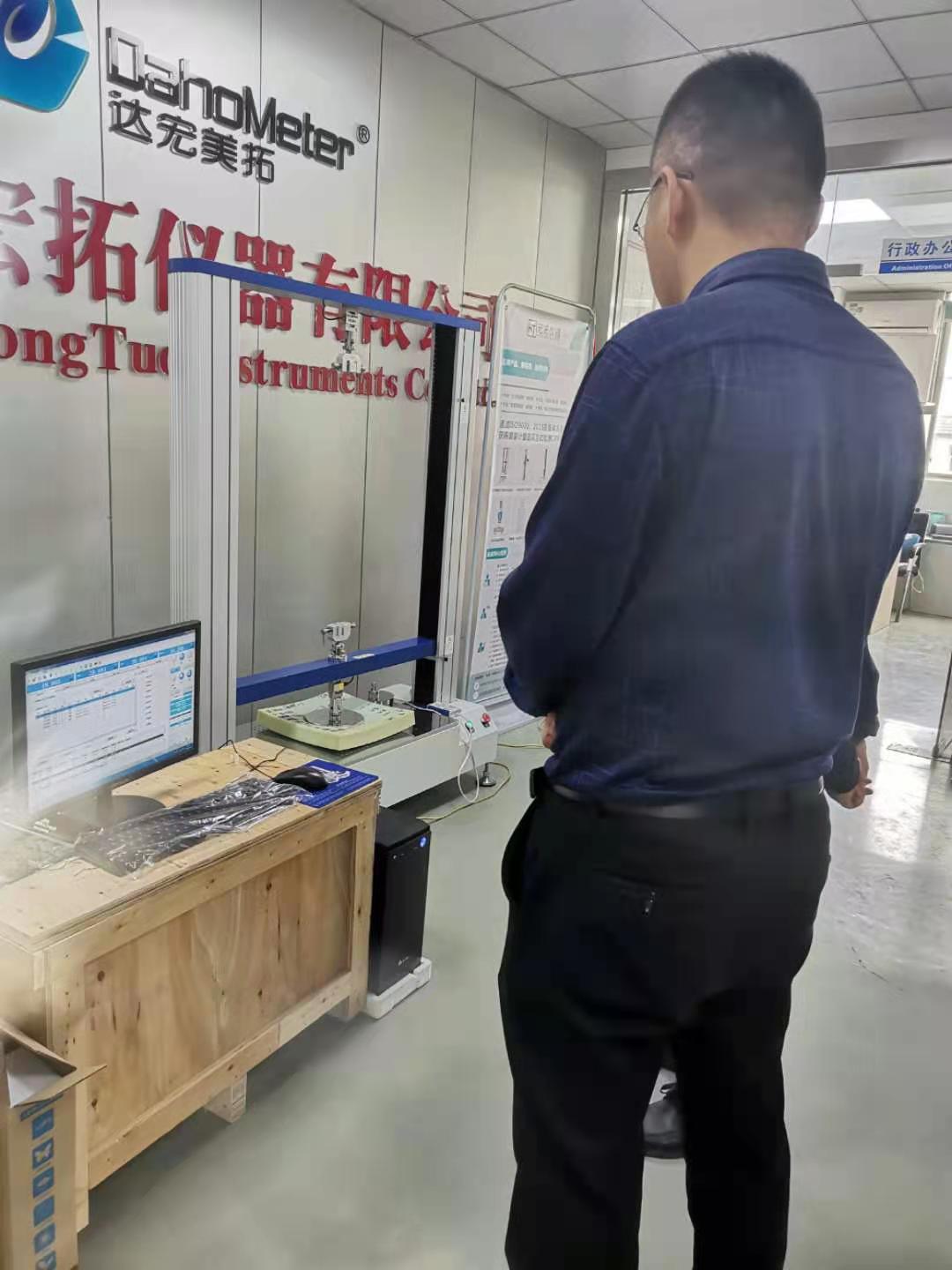 客戶湖北麥德利航空材料科技有限公司在觀看壓縮測試和驗收HT-140SC-5加寬型拉力試驗機
