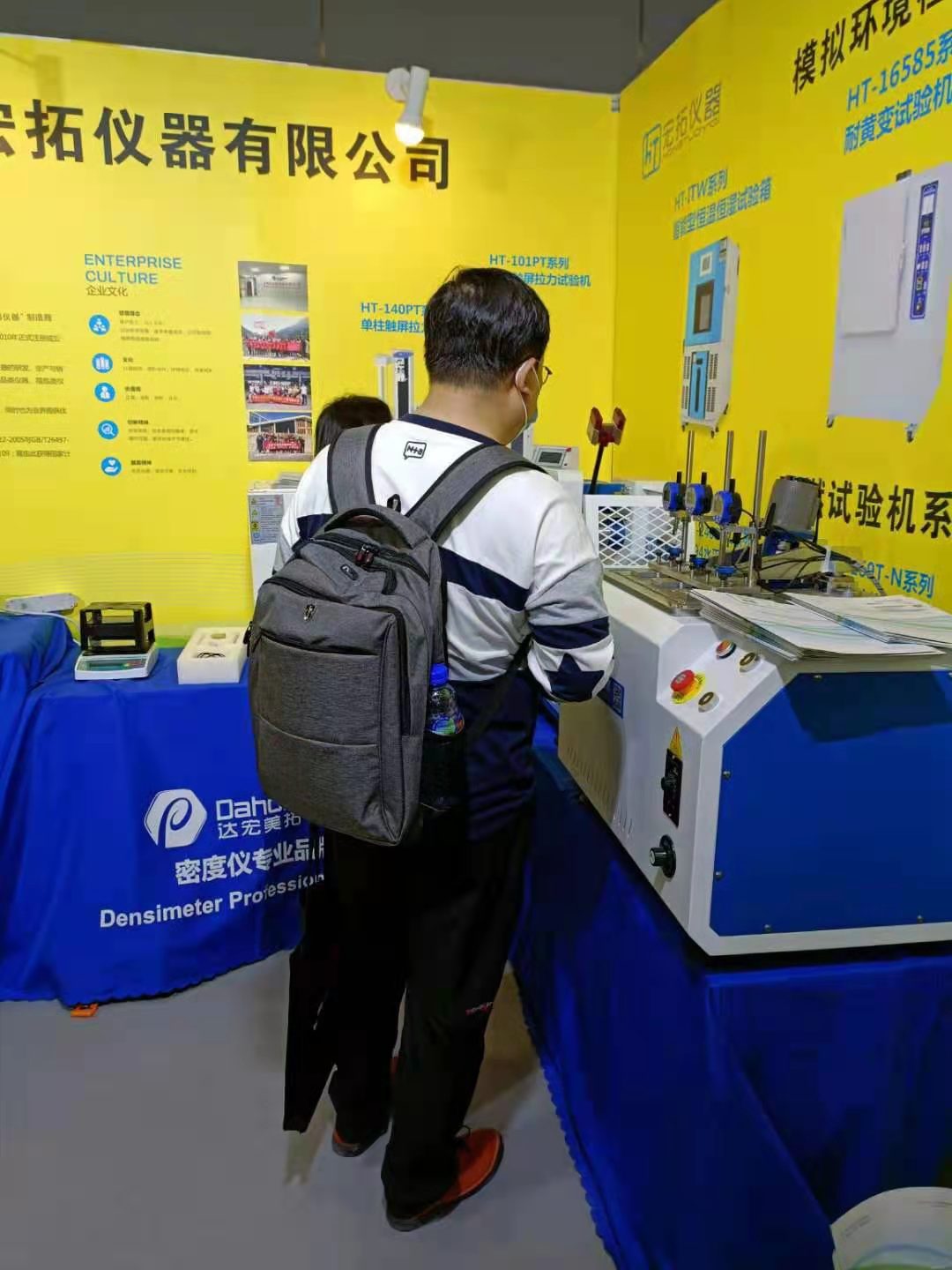 在展會期間,每天都有廣東宏拓儀器科技有限公司的新老客戶都蒞臨現場展位參觀,咨詢和交流,現場的工作人員耐心的向參觀和咨詢的客戶介紹產品的使用流程和工作原理,對客戶提出的測試時遇到的問題和疑惑也進行了一一解答,有的客戶在經過詳細的咨詢和解答后,現場就與宏拓達成了初步購買協議。