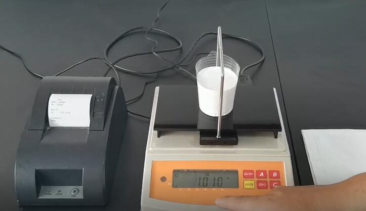 2、在顯示0.000狀態下,將盛有涂料的測量杯放于測量放置板上;