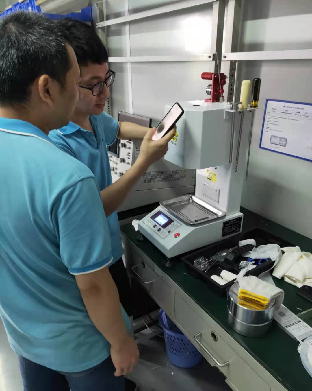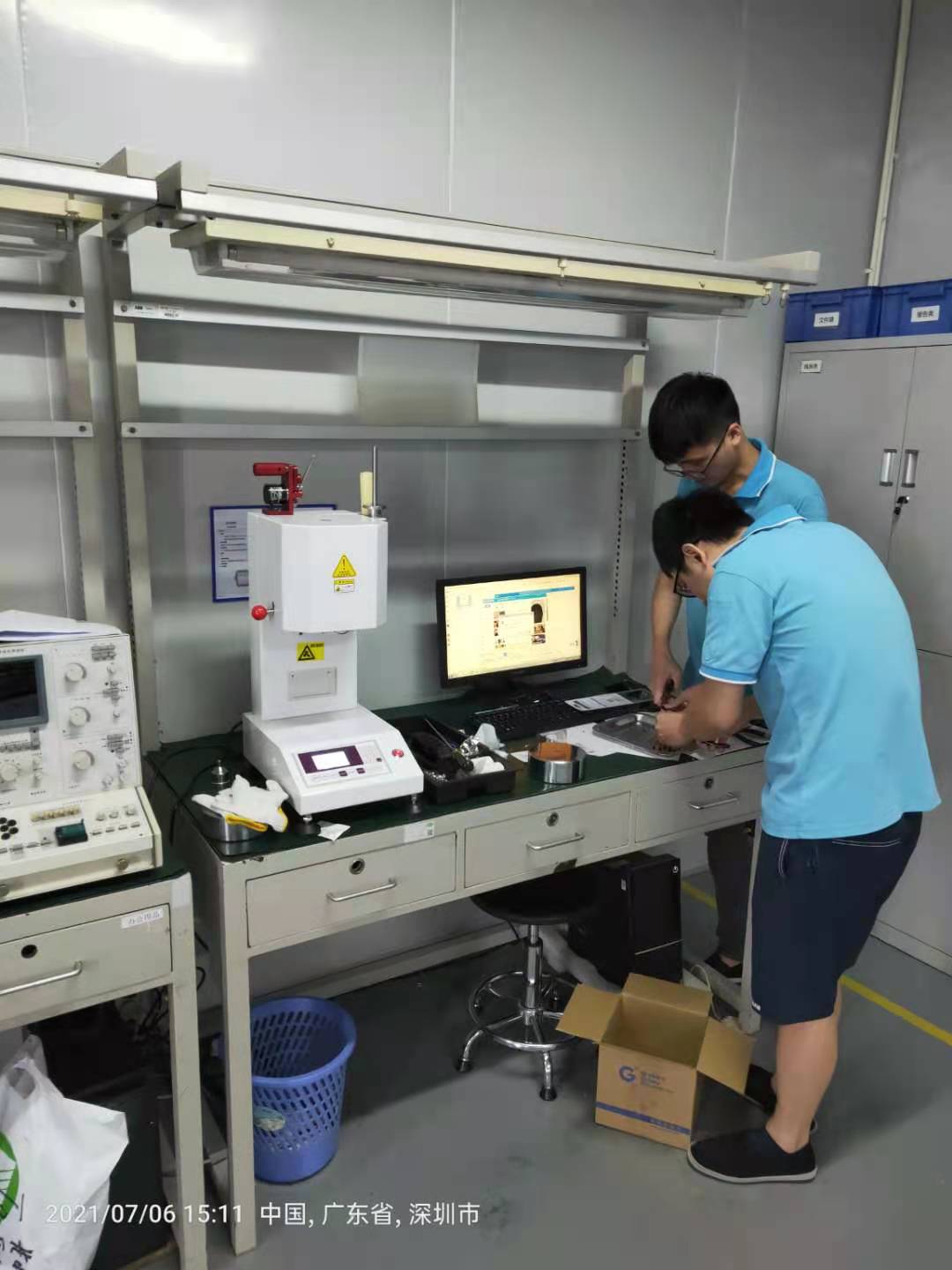 深圳市泛海三江電子股份有限公司實驗室工作人員正在學習和使用HT-3682VM-BA型熔指儀