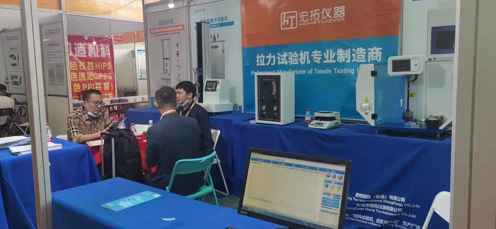 在本次展會上,廣東宏拓儀器科技有限公司展出了自主生產的拉力試驗機,密度測試儀,高分子材料物性檢測儀器等企業工廠試驗室標配測試儀器,針對生產企業在拉力測試和物理性能測試中面臨的需求、效率、成本等問題,提供了切實有效的解決方案。歷時3天(10月15-18日)的展會,宏拓儀器展臺吸引了無數參展者的駐足,而工作人員也始終以飽滿的熱情、耐心地與參展者溝通,產品的特色和優勢在宏拓儀器工作人員精彩的演說及演示下展現得淋漓盡致,會場上的專業觀眾及參展企業對產品有一定了解之后,對宏拓儀器所展出的測試儀器表示了極大的興趣,很多客戶都現場進行了詳細咨詢,希望通過這次機會進行深入合作。