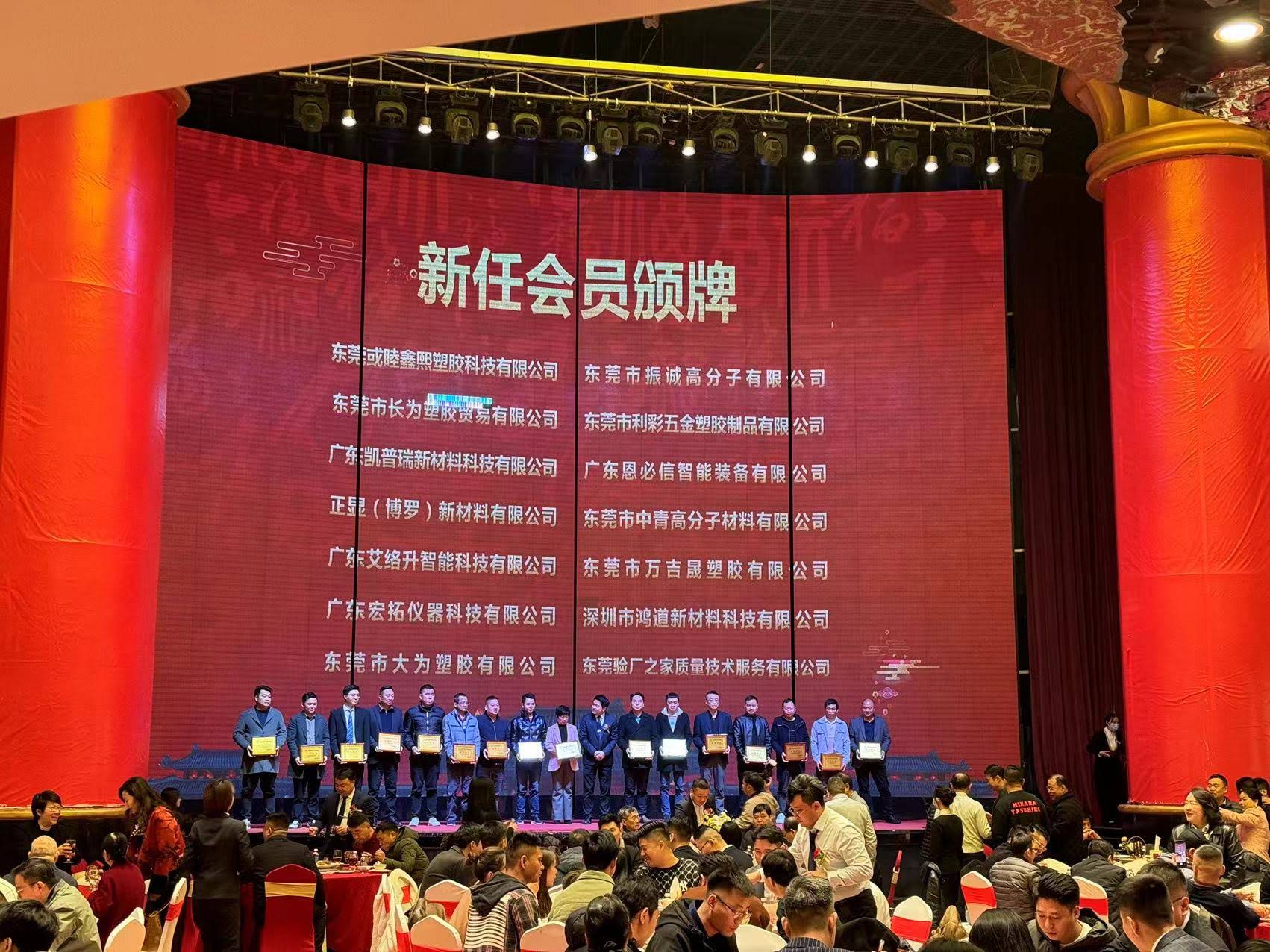 20231221日,由東莞市塑膠產業發展促進會主辦的“深信篤行 同新共贏”2024年迎新春聯誼晚會,在東莞樟木頭半山酒店隆重舉行,廣東宏拓儀器科技有限公司受邀參加,公司總經理鐘總親自出席此次晚會,晚會上東莞市塑膠產業發展促進會對新任會員進行頒獎儀式,由我司總經理鐘總上臺領獎。