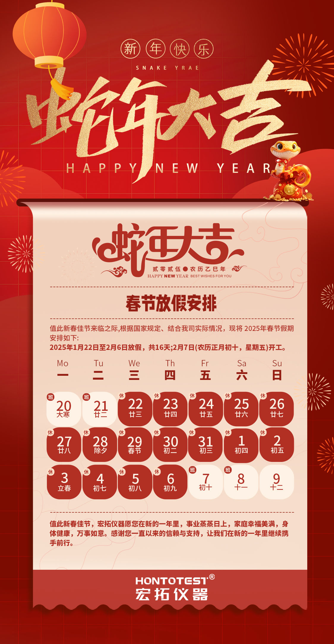 迎新春,賀新年 宏拓儀器2025年春節(jié)放假安排公告