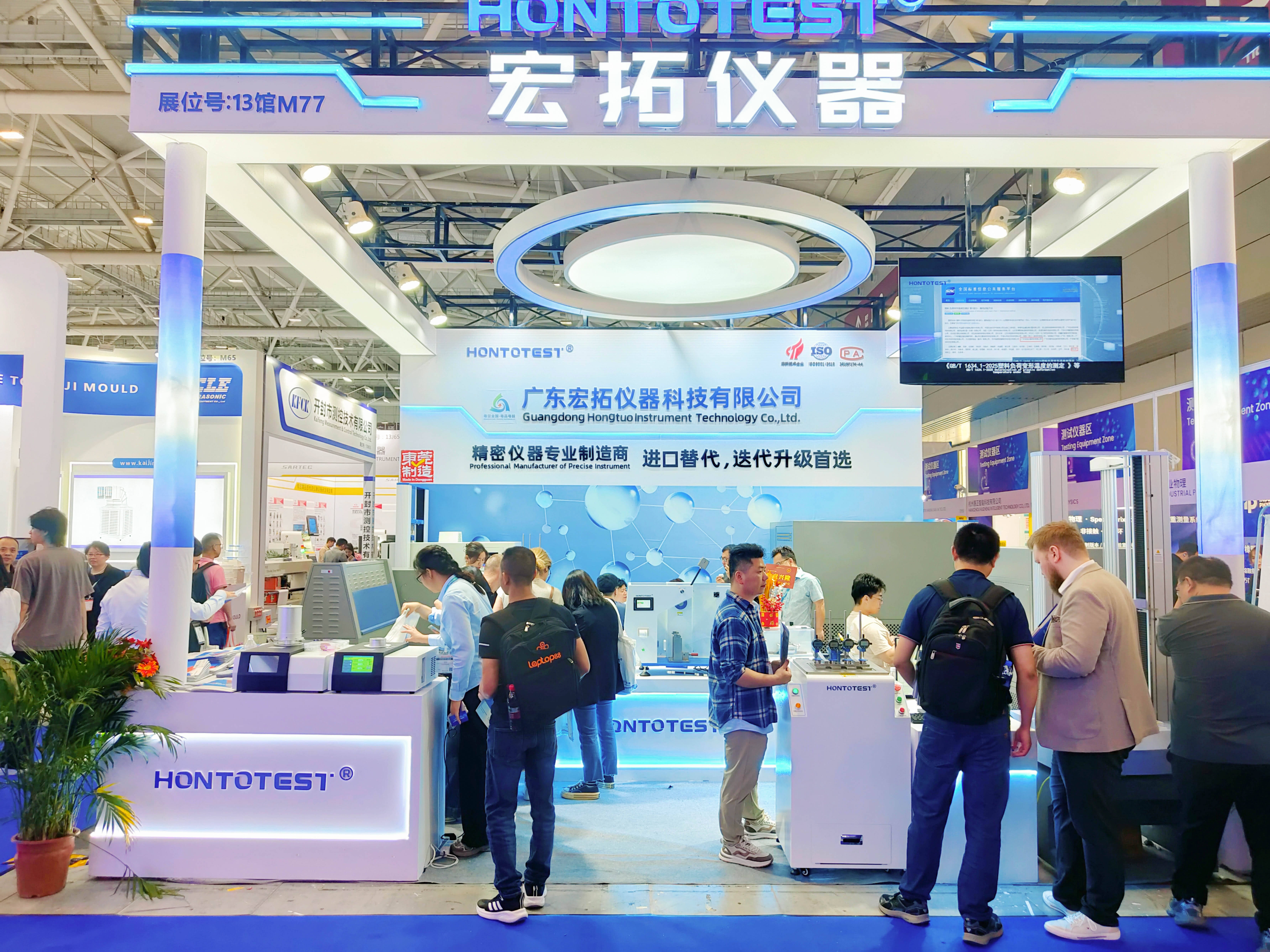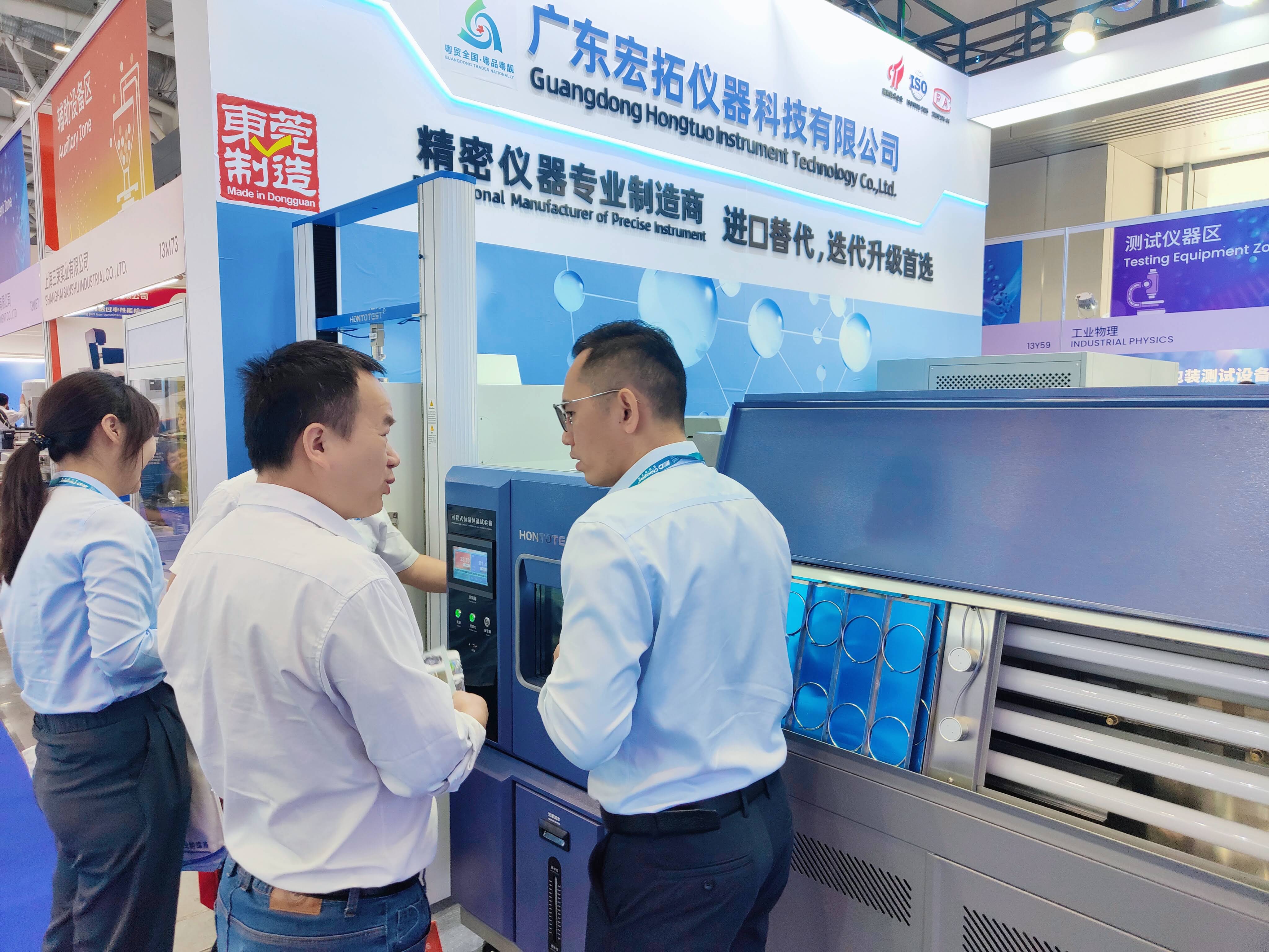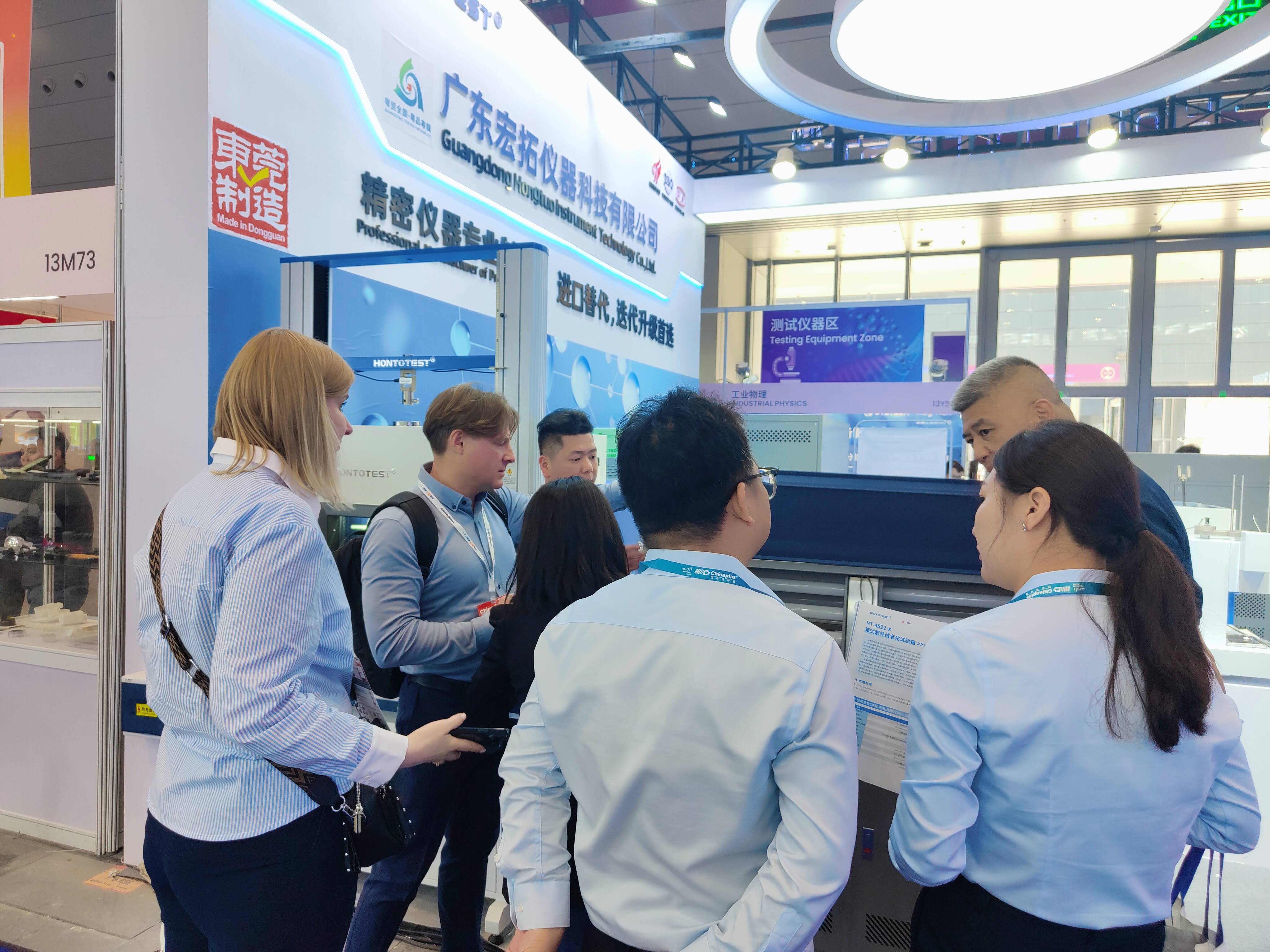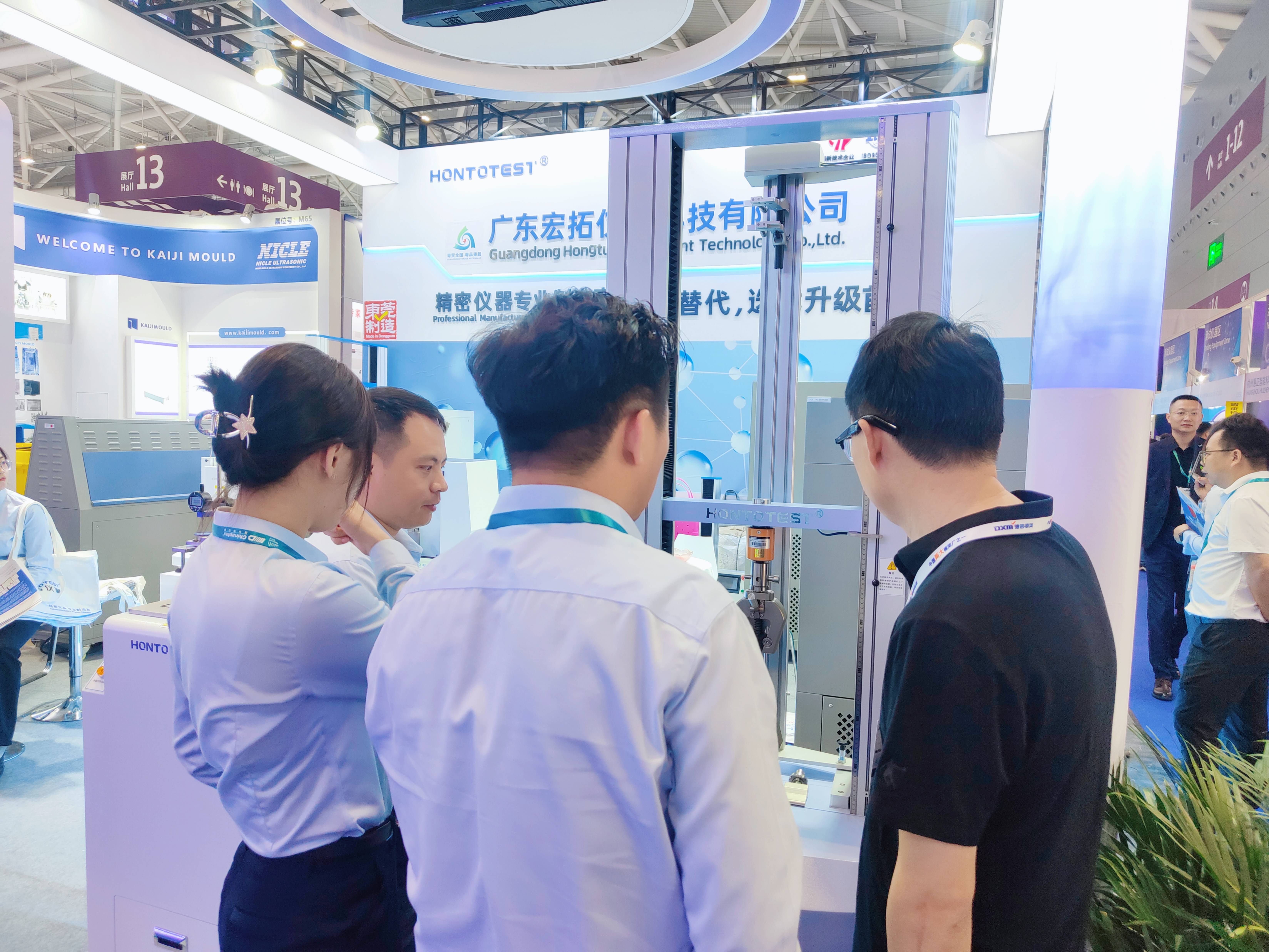 本屆展會上,宏拓儀器展位人潮涌動,絡(luò)繹不絕,卓越的技術(shù)和創(chuàng)新產(chǎn)品吸引了眾多專業(yè)觀眾和行業(yè)合作伙伴駐足關(guān)注。其中我司新品:紫外線老化試驗箱,差示掃描量熱儀,可程式恒溫恒濕試驗箱,萬能材料拉力試驗機(jī)等創(chuàng)新產(chǎn)品,彰顯宏拓儀器在塑料檢測儀器上不斷進(jìn)取和追求卓越的精神。